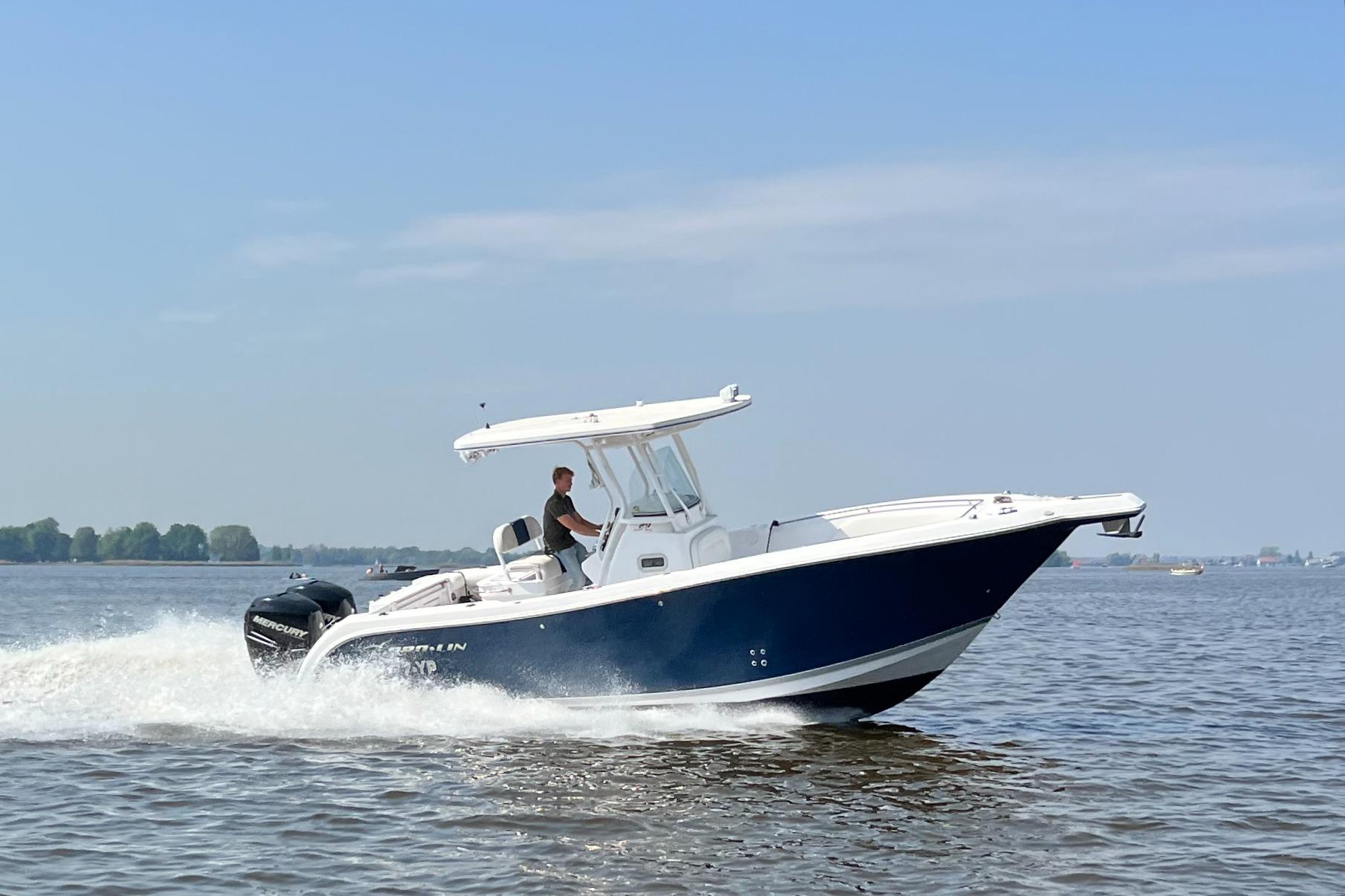 Pro-Line 29 Grand Sport uit 2008 aangedreven door 2 x Mercury 250 pk Verado Outboardmotoren. Deze gave center consoleboot is een echte eye-catcher op het water