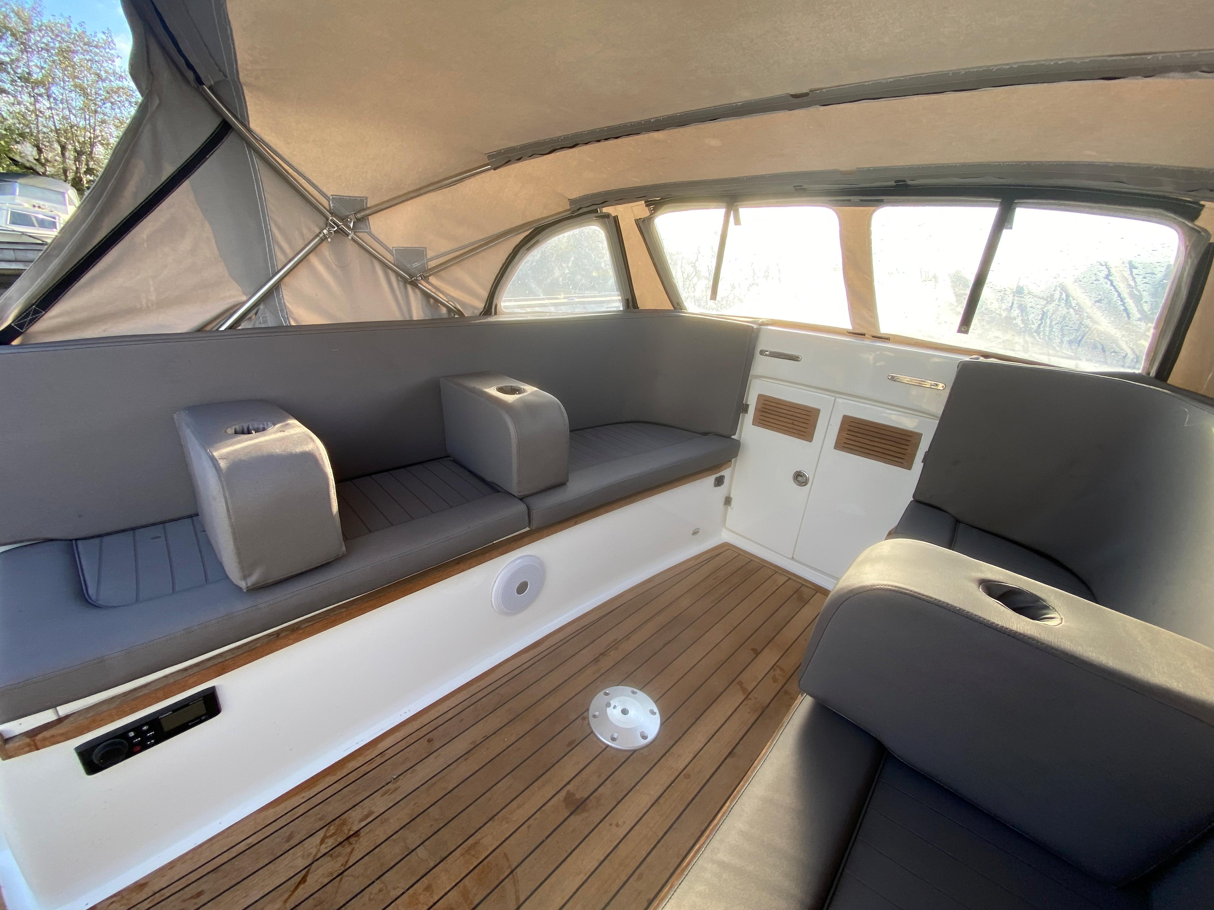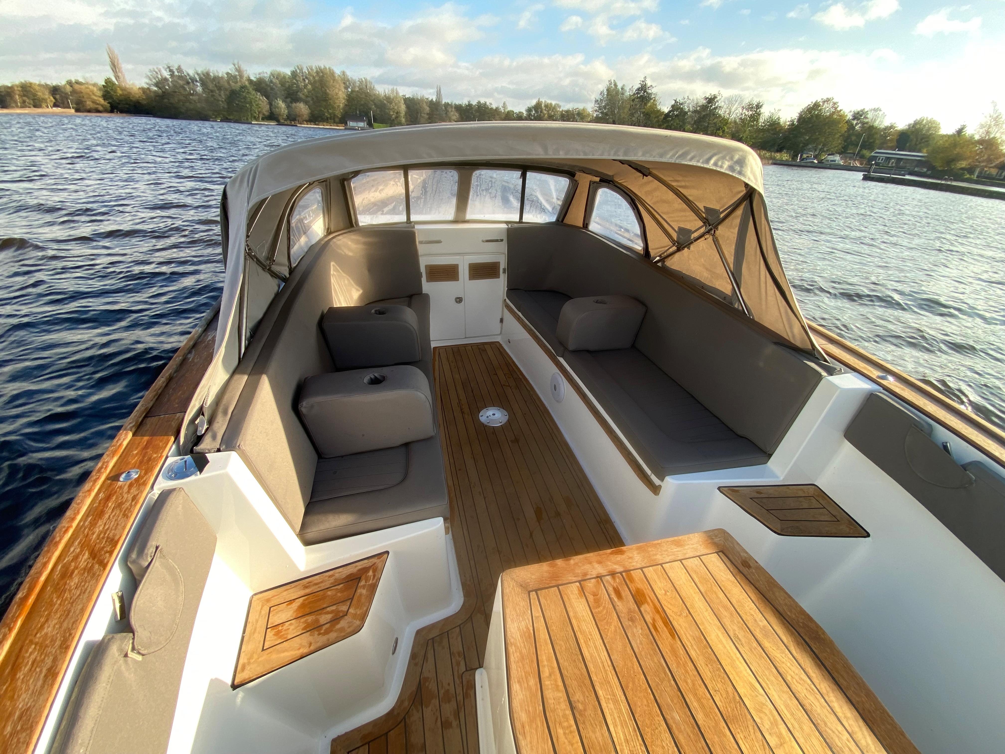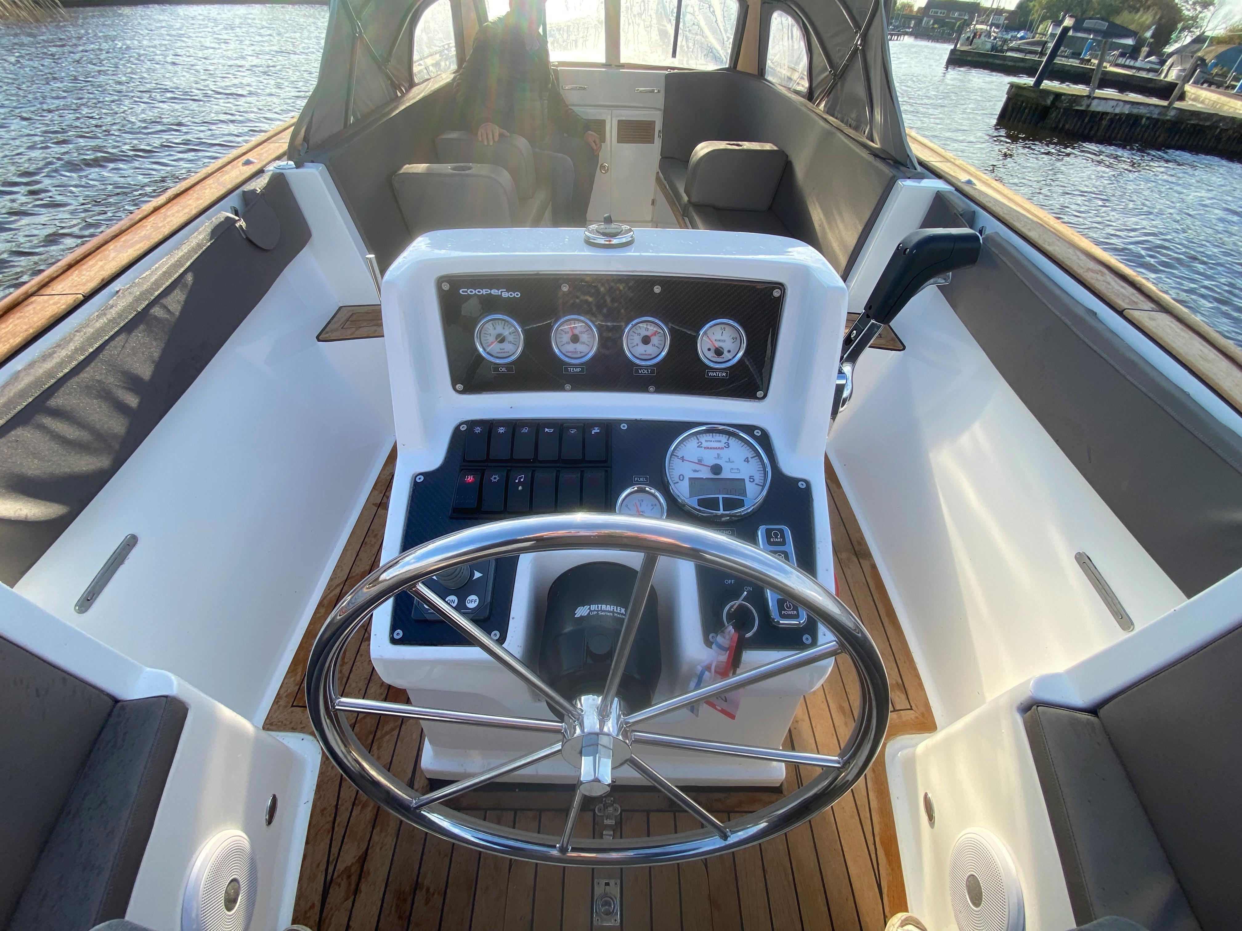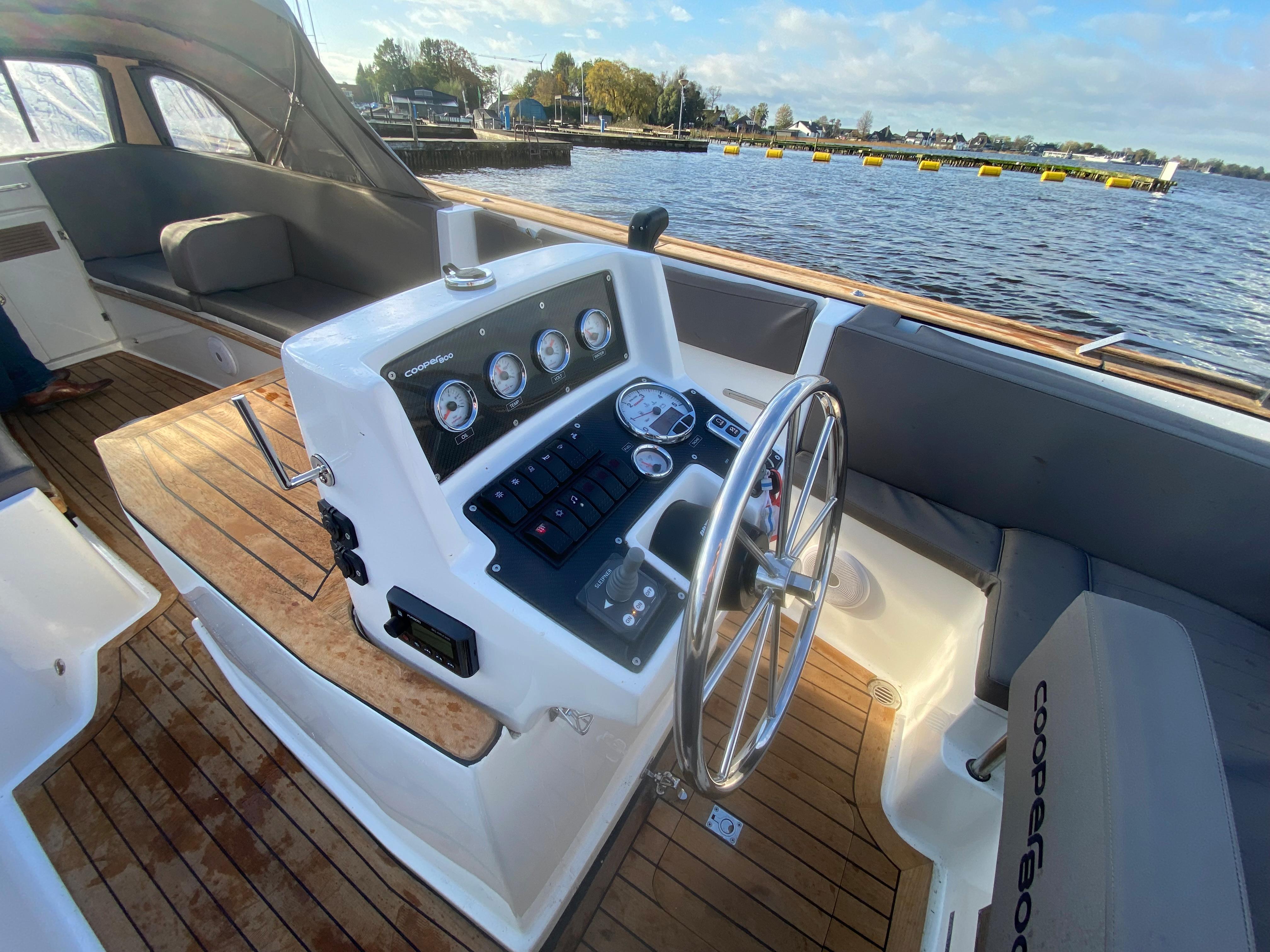 De Cooper 800 is in uitstekende staat en bomvol met opties. Het schip is voorzien van een toilet, boegschroef, Fusion radio installatie, complete kussenset, buiskap incl. dekzeil en biminitop.