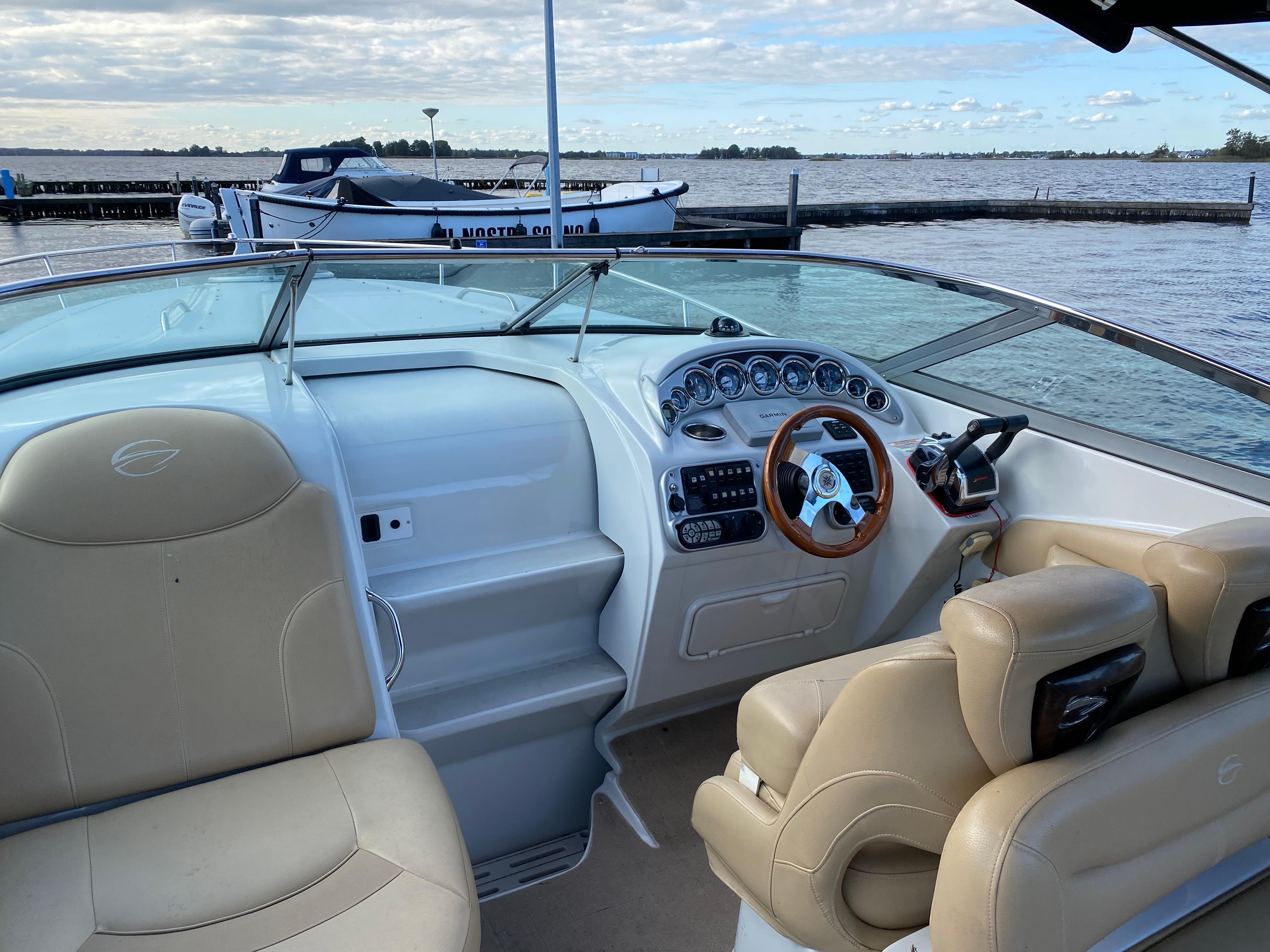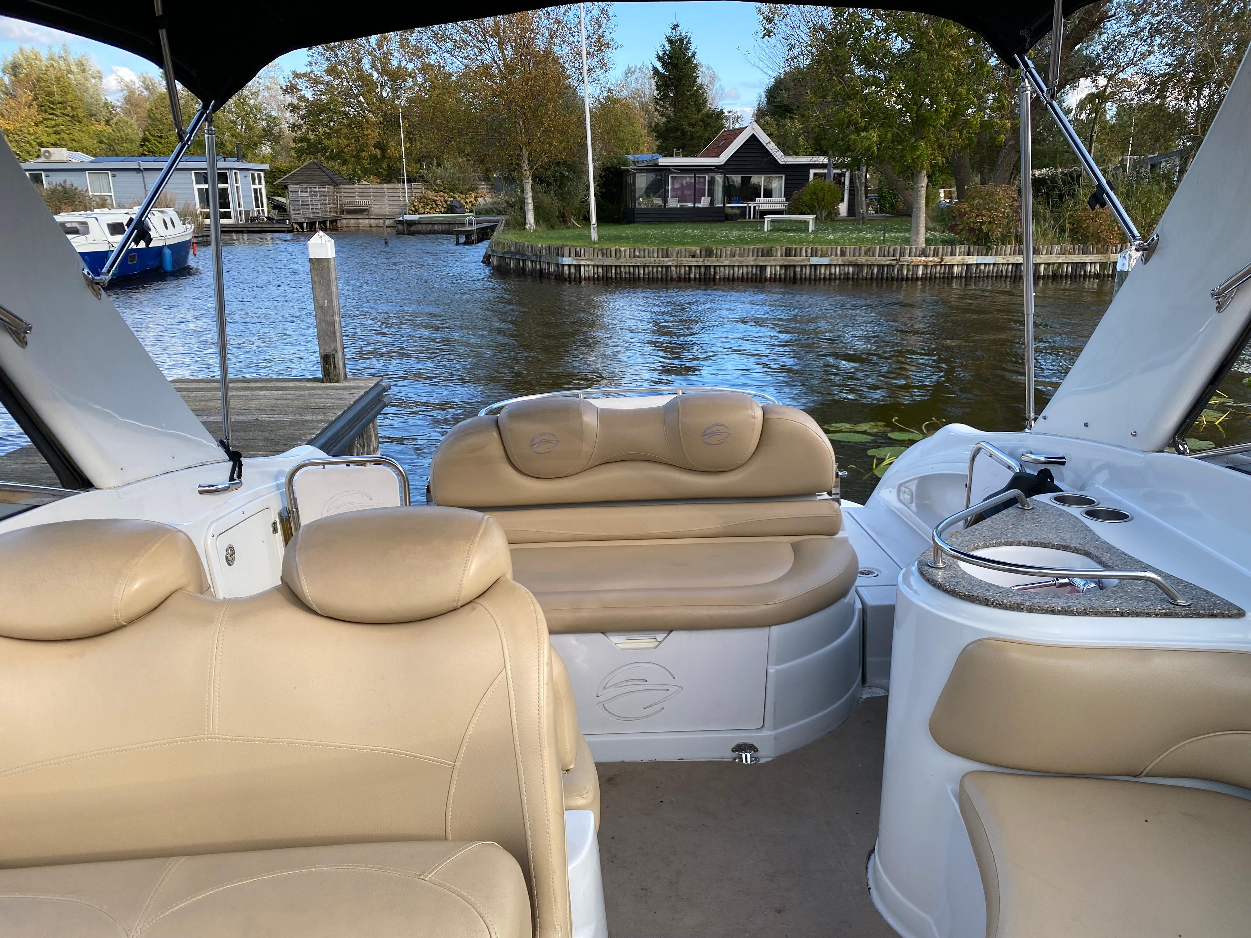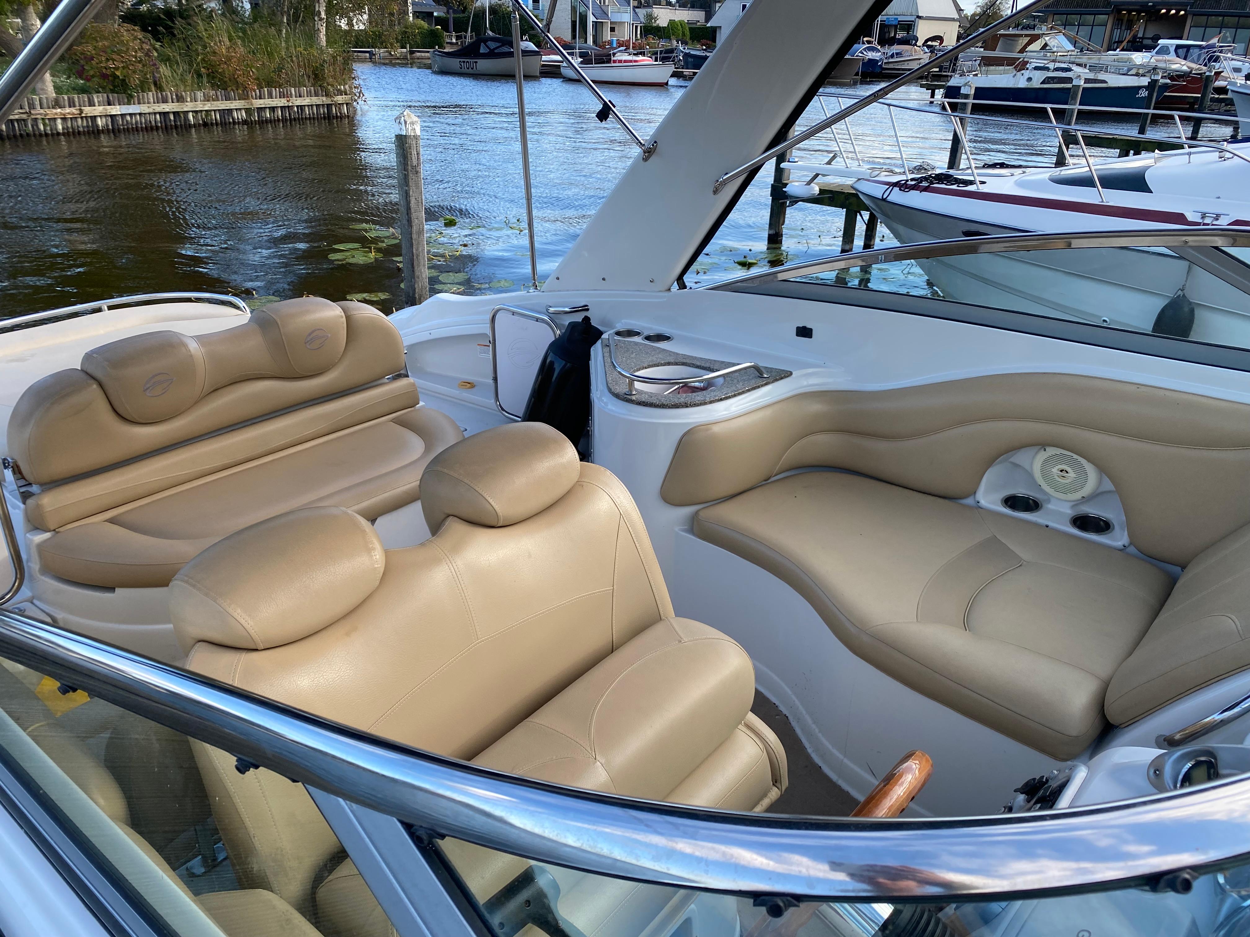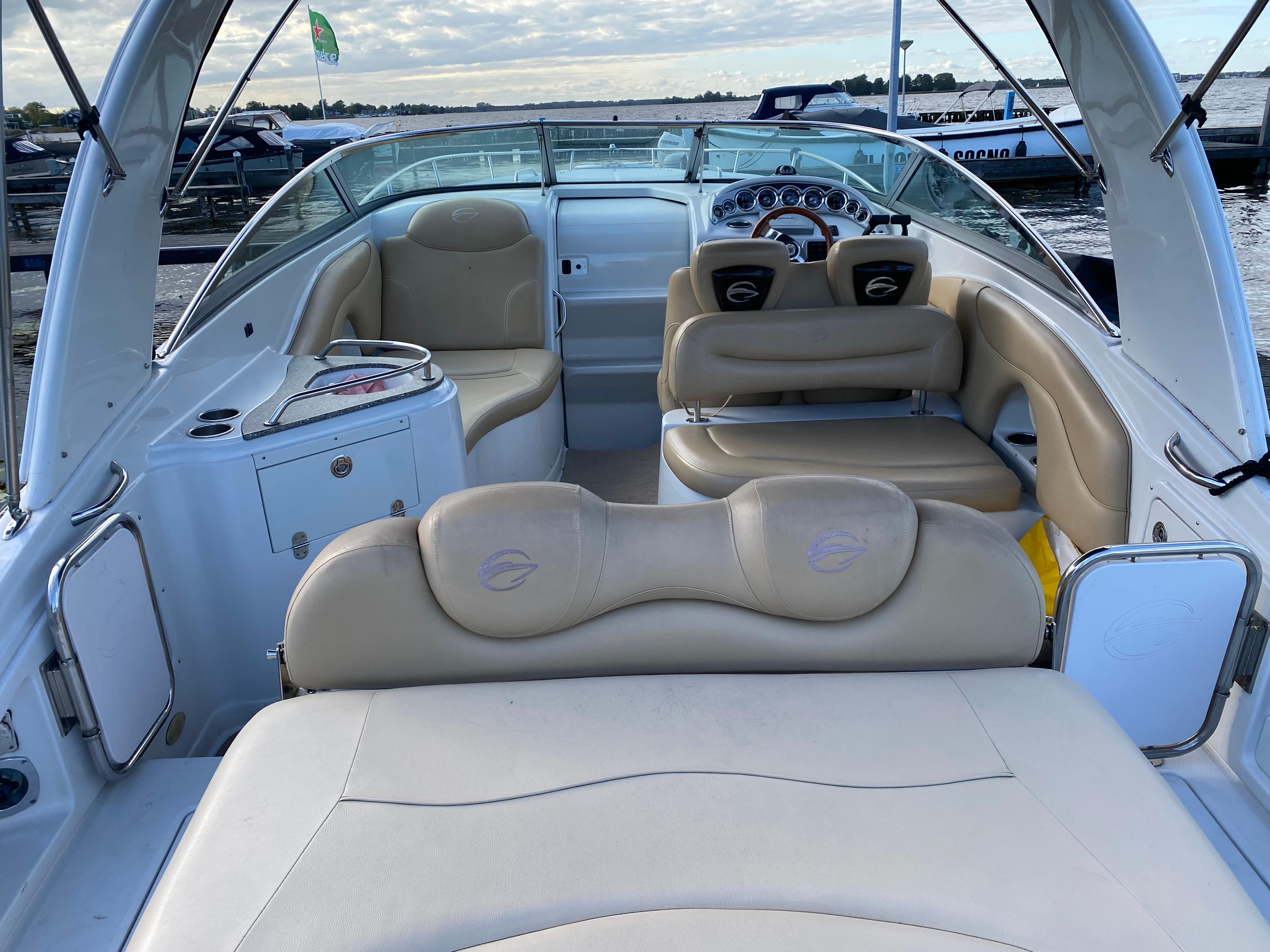 Crownline 325 SCR uit 2012 aangedreven door 2 Mercuiser 250 5.7L MAG 300 pk motoren met circa 425 motoruren. Het schip is rijk uitgerust met luxe banken met lederen bkleding, biminitop, audi
