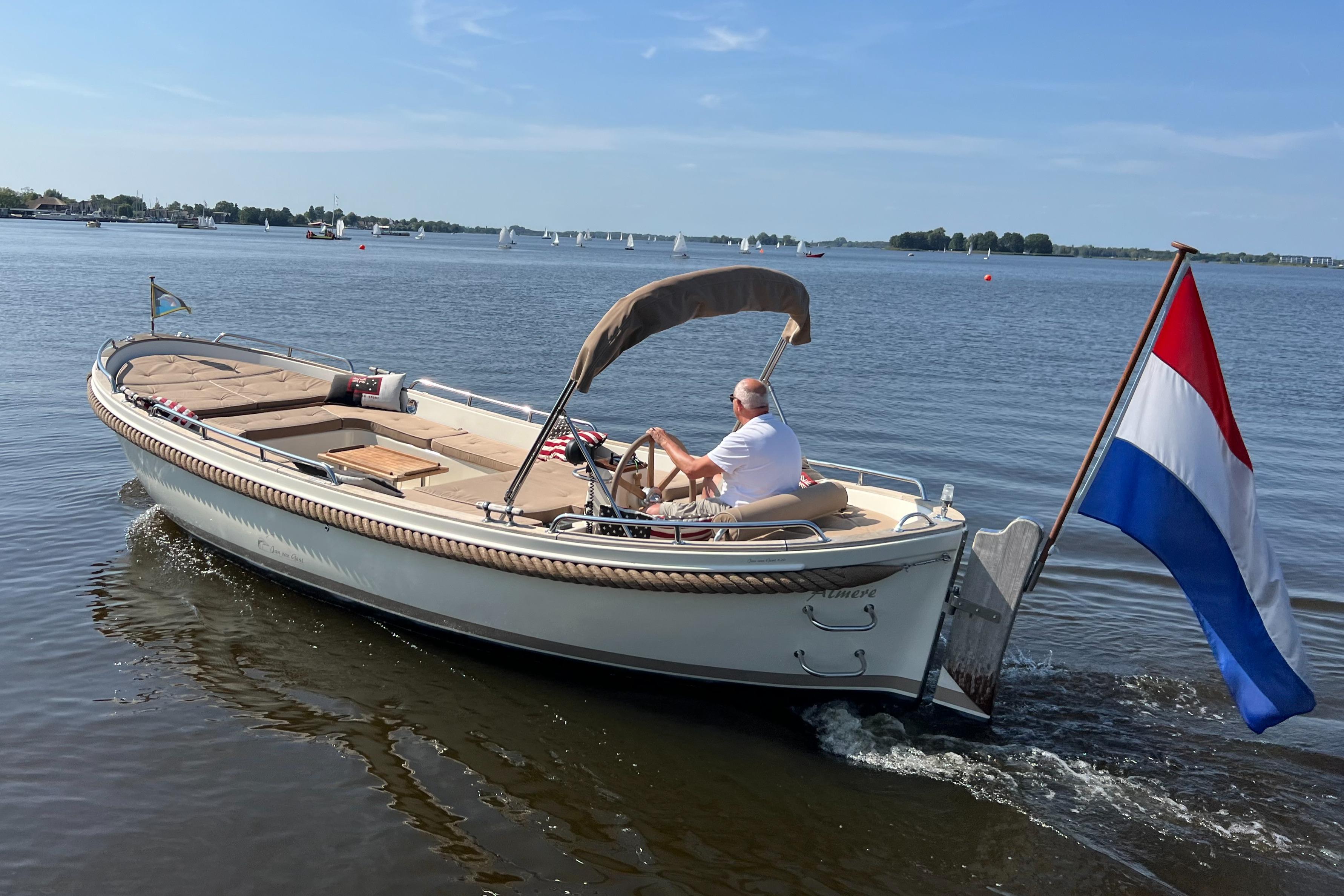 De sloep is voorzien van een luxe complete kussenset met zonnedek, buiskap, biminitop, boegschroef, koelkast, kuiptafel, zoeklicht, kuipverlichting en een Raymarine dieptemeter.