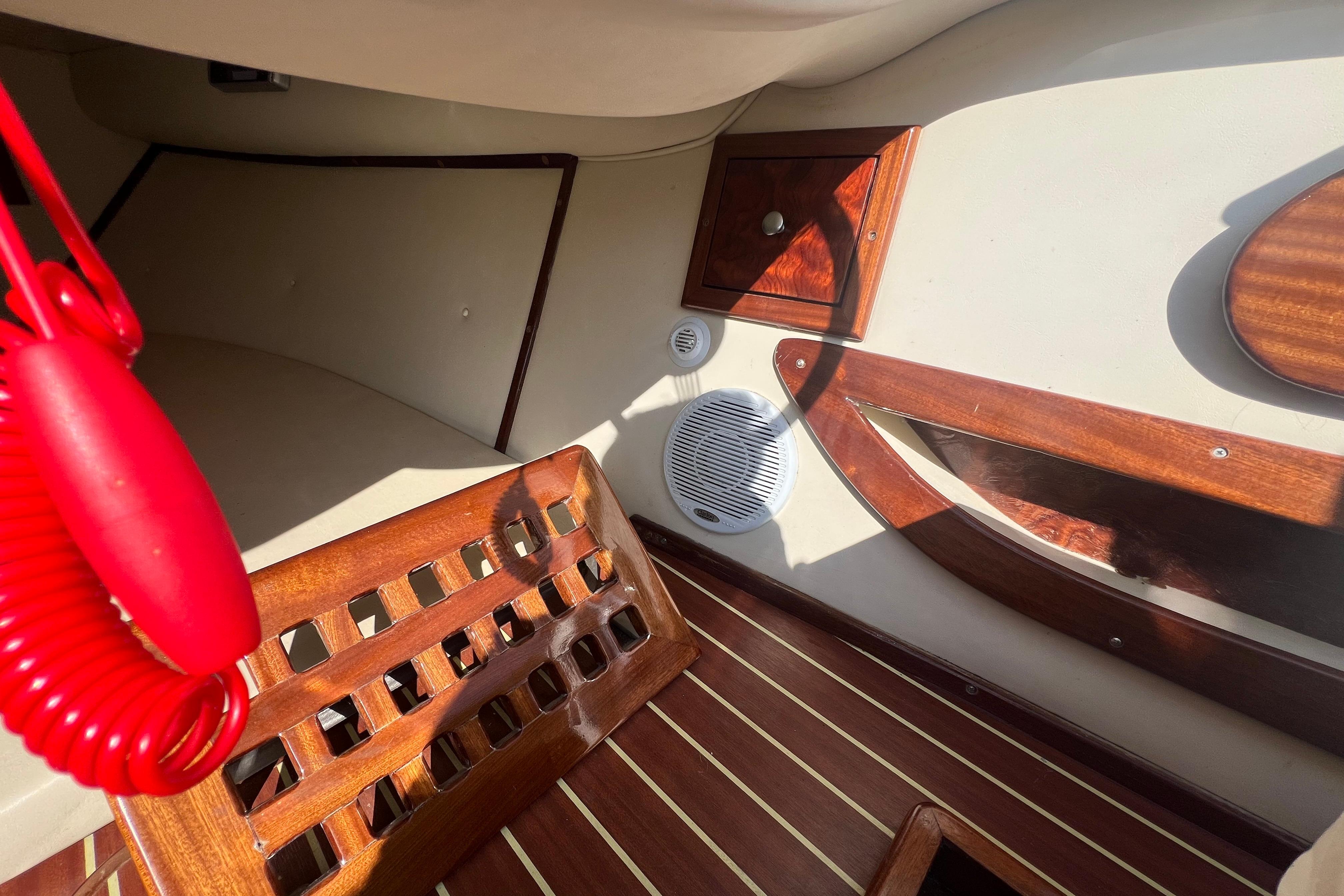 Deze prachtige KRAL 700 combineert klassieke luxe met moderne prestaties. De boot is met de hand gebouwd uit 12 lagen GRP (18 mm romp) en afgewerkt met hoogwaardig Sappeli Mahonie. Dankzij het doordachte ontwerp en hoogwaardige afwerking straalt deze boot klasse en kwaliteit uit.