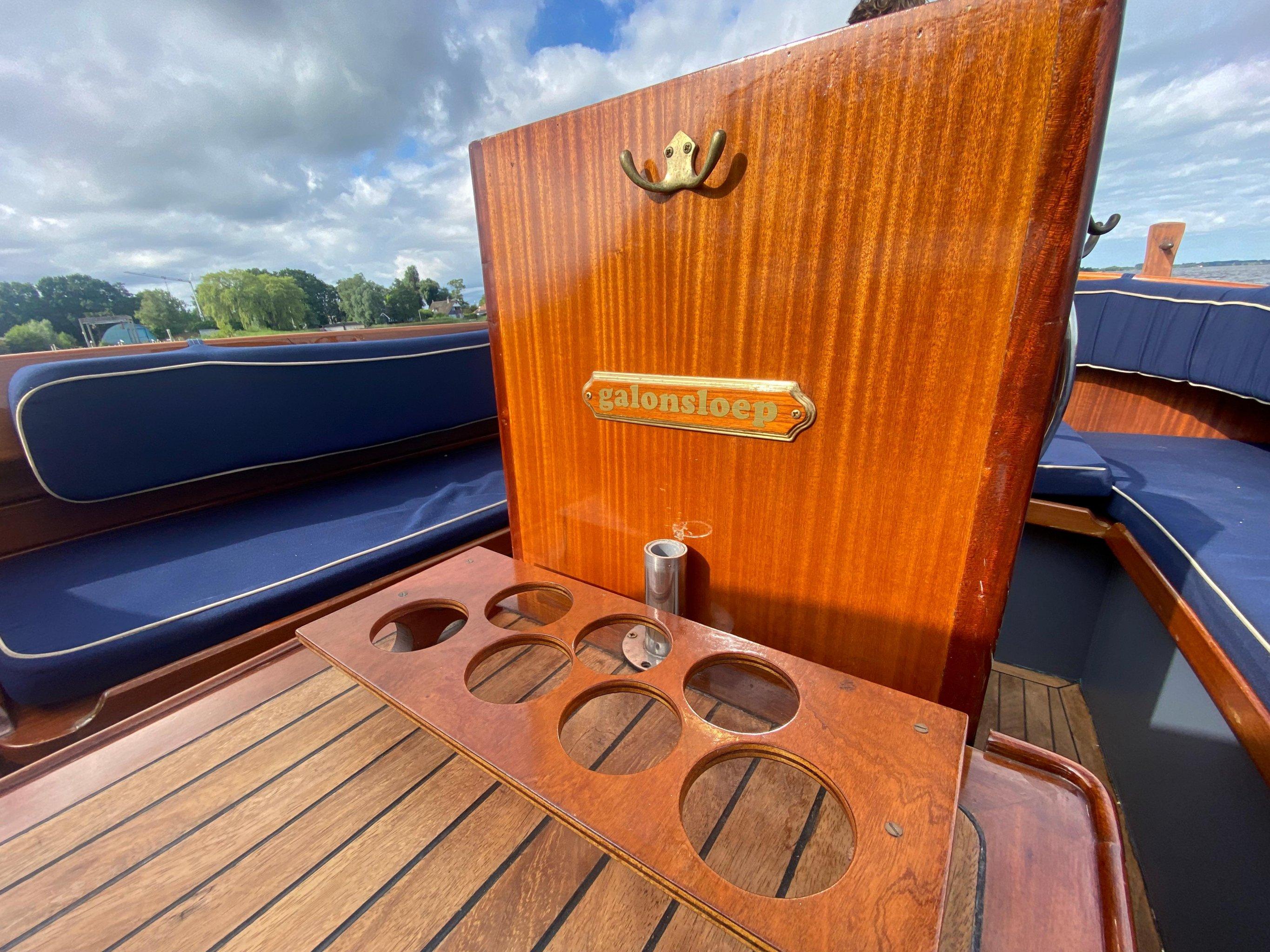 De Galonsloep heeft de charmes van een klassieke houten sloep met een polyester romp wat de sloep onderhoudsarm maakt. Het is een perfect onderhouden 700 Galon Sloep met goede vaareigenschappen. Het lakwerk van het hout en gelcoat is in 2025 aangepakt. Bij oplevering krijgt de motor een beurt zodat u onbezorgd het water op kan.