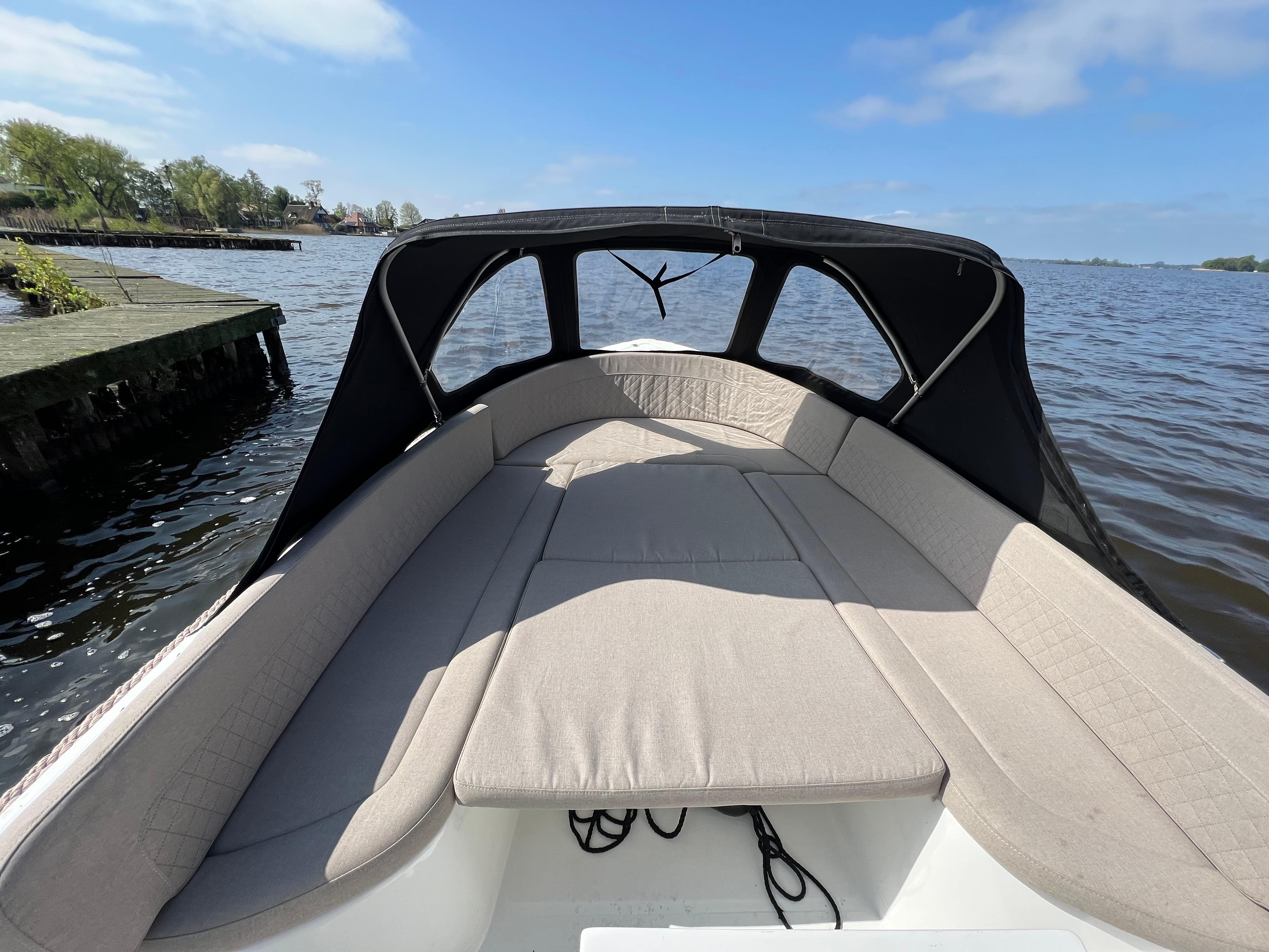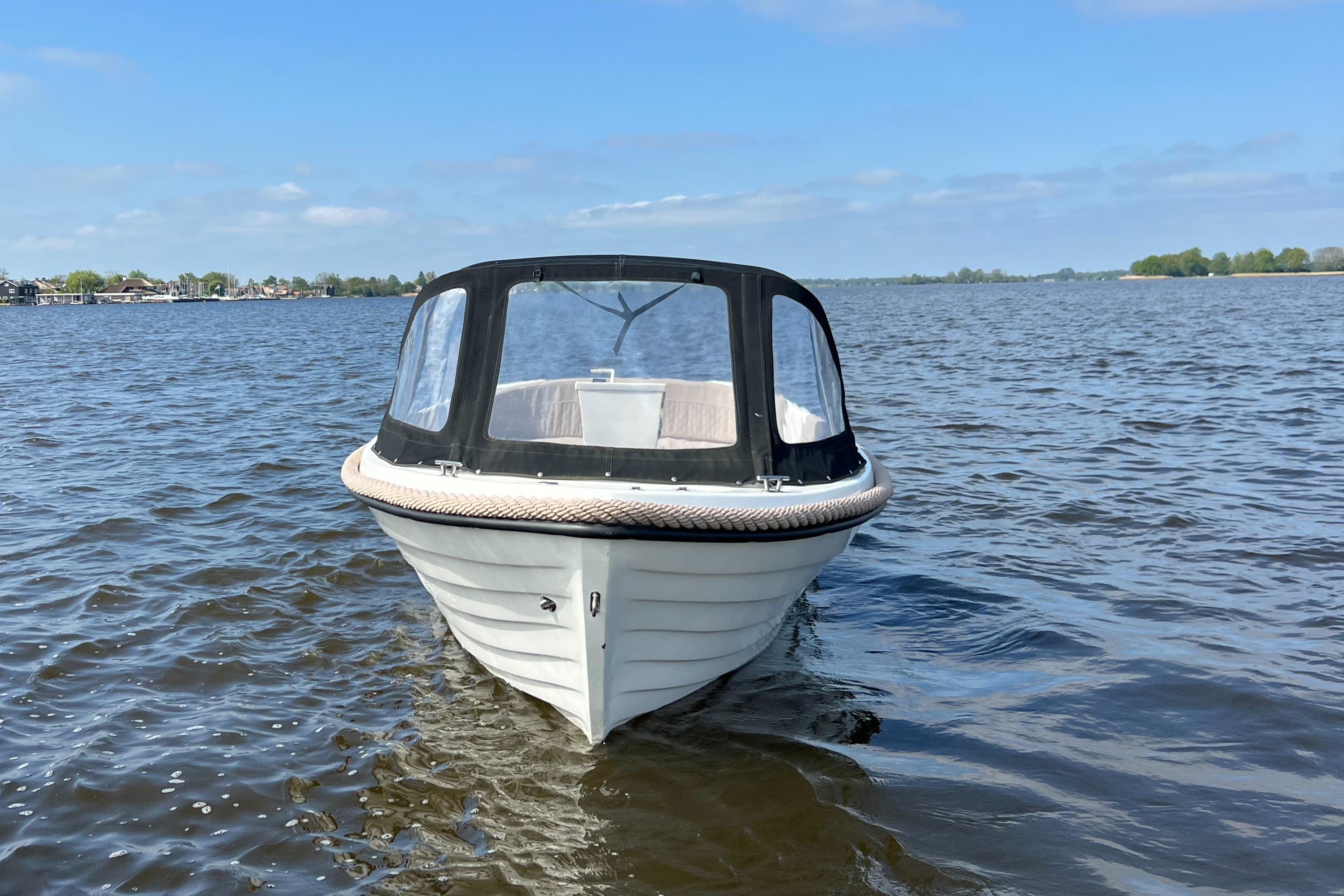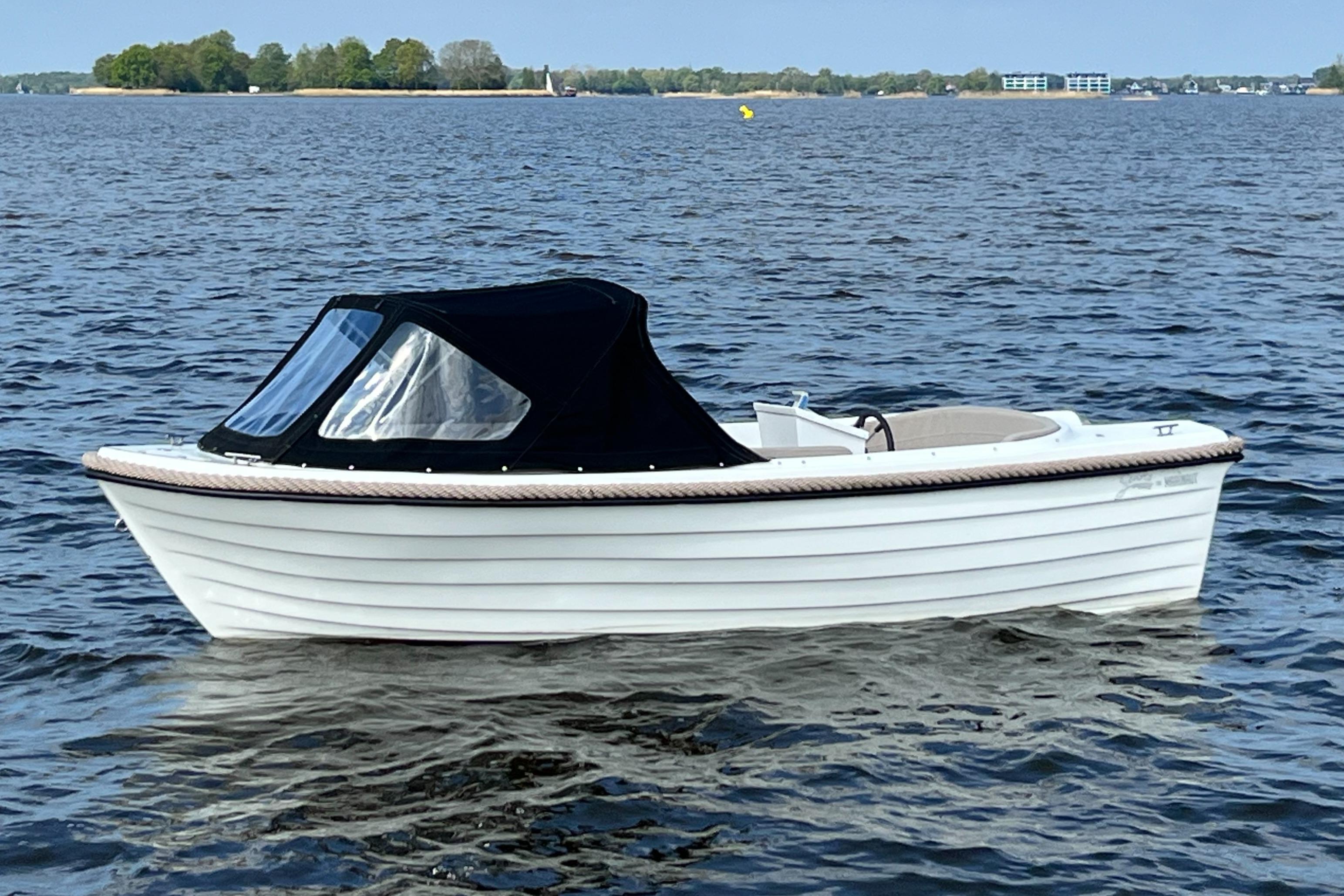 De elektrische motor levert een vermogen van 6 pk en heeft voldoende capaciteit om 4 uur het water op te kunnen met een volle accu. De motor is fluisterstil, krachtig en onderhoudsvrij.
