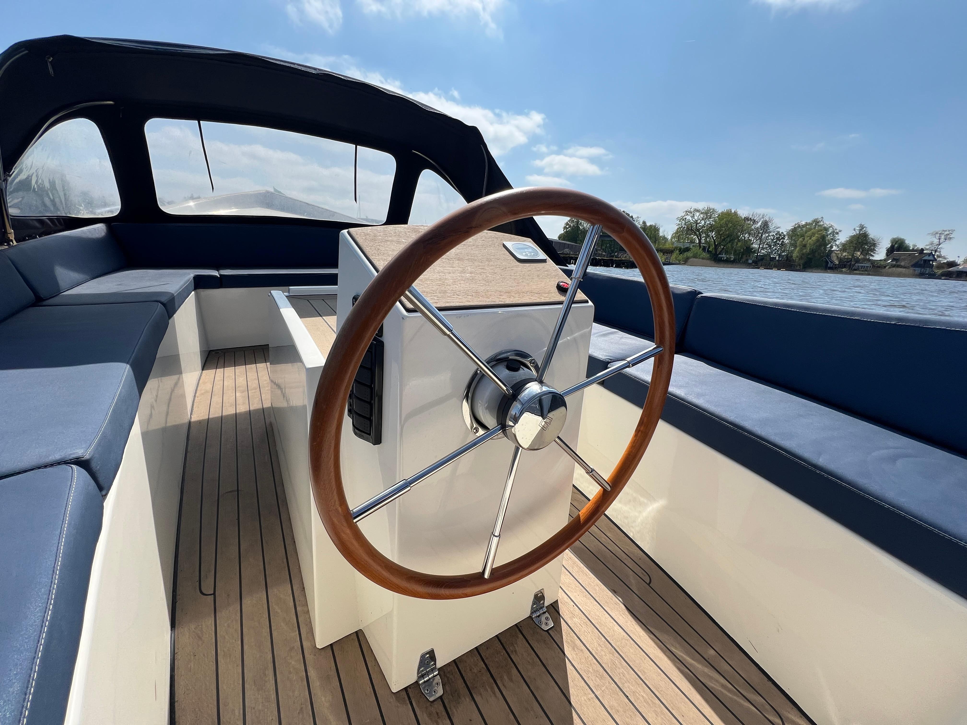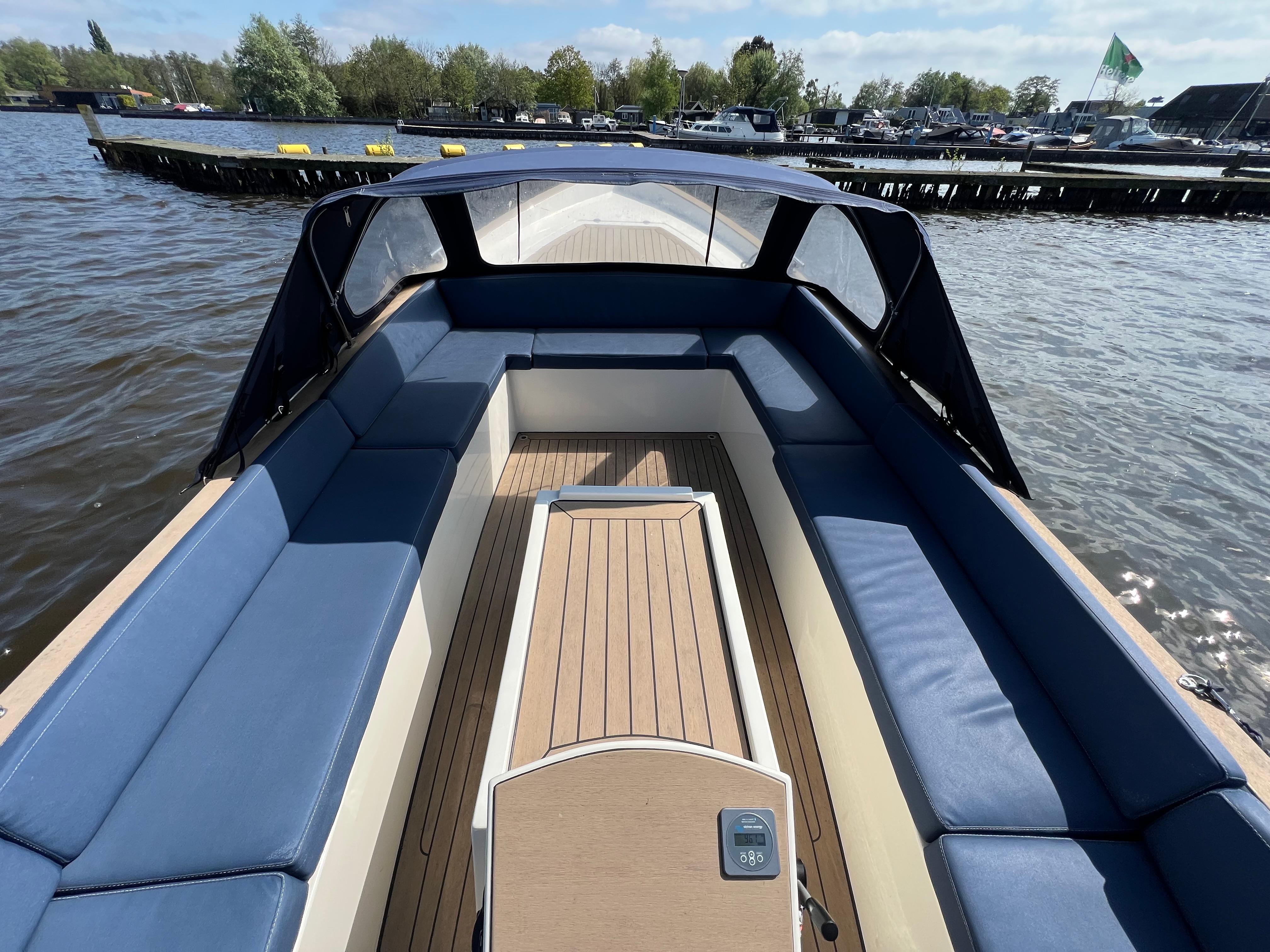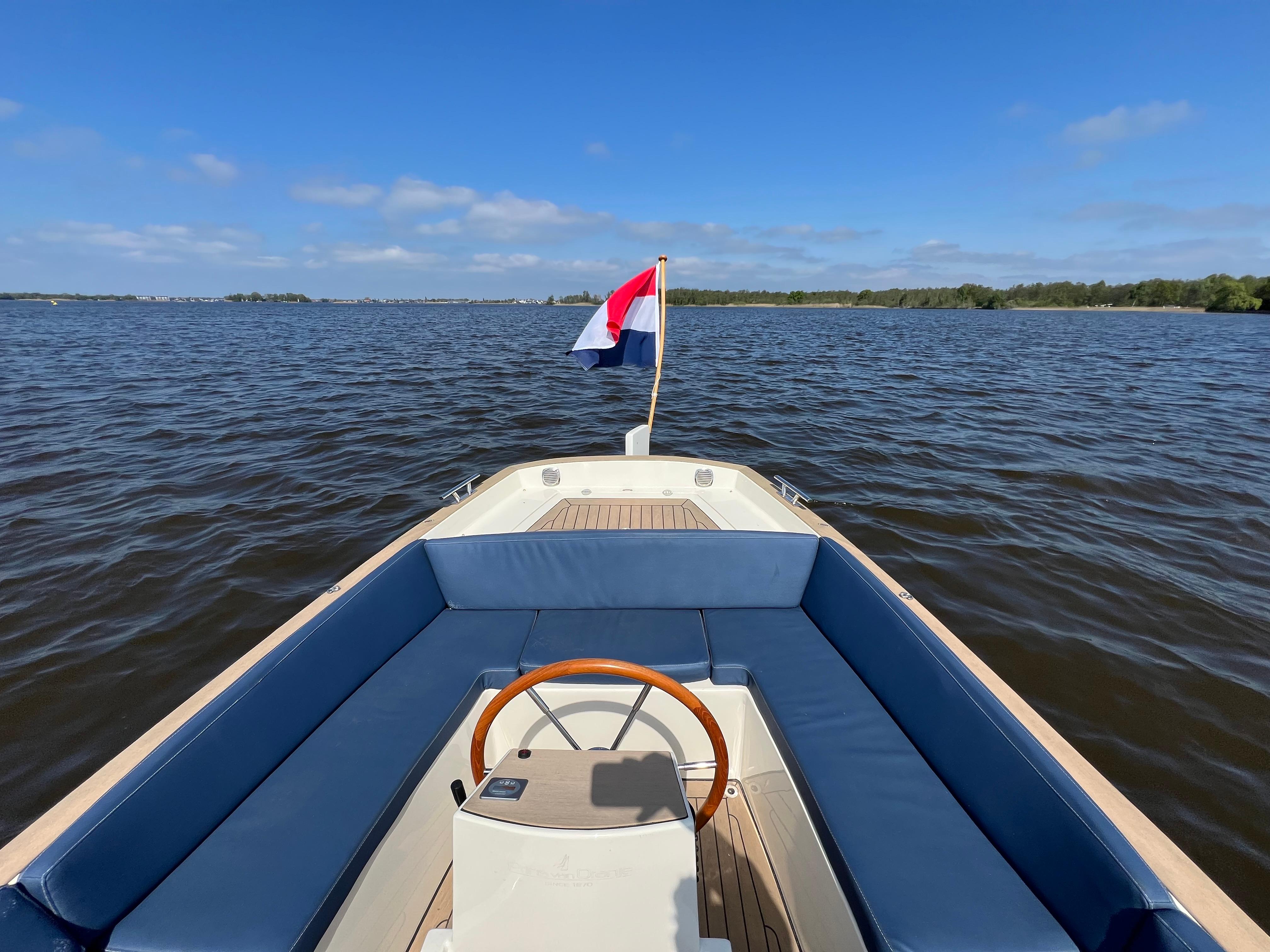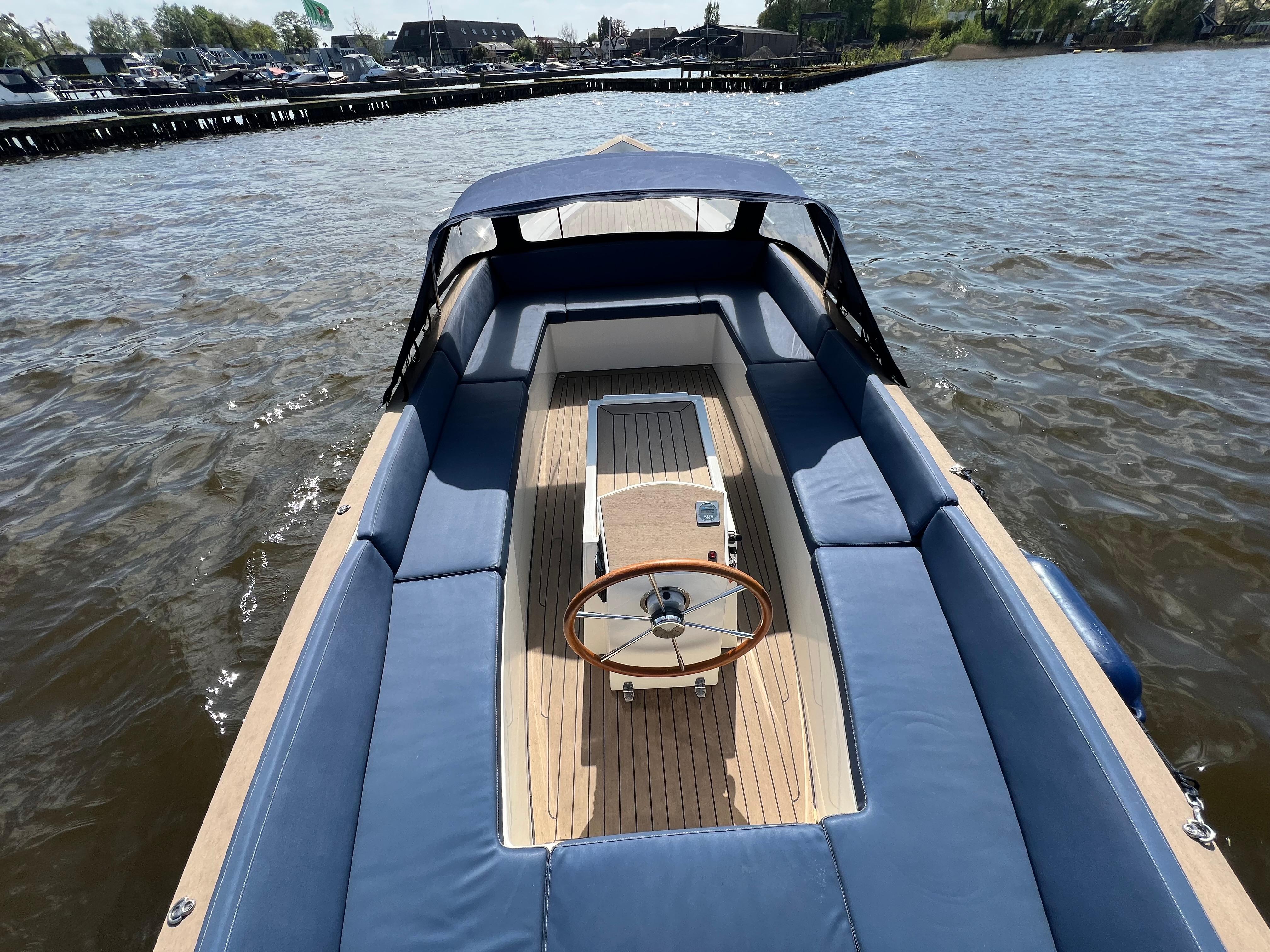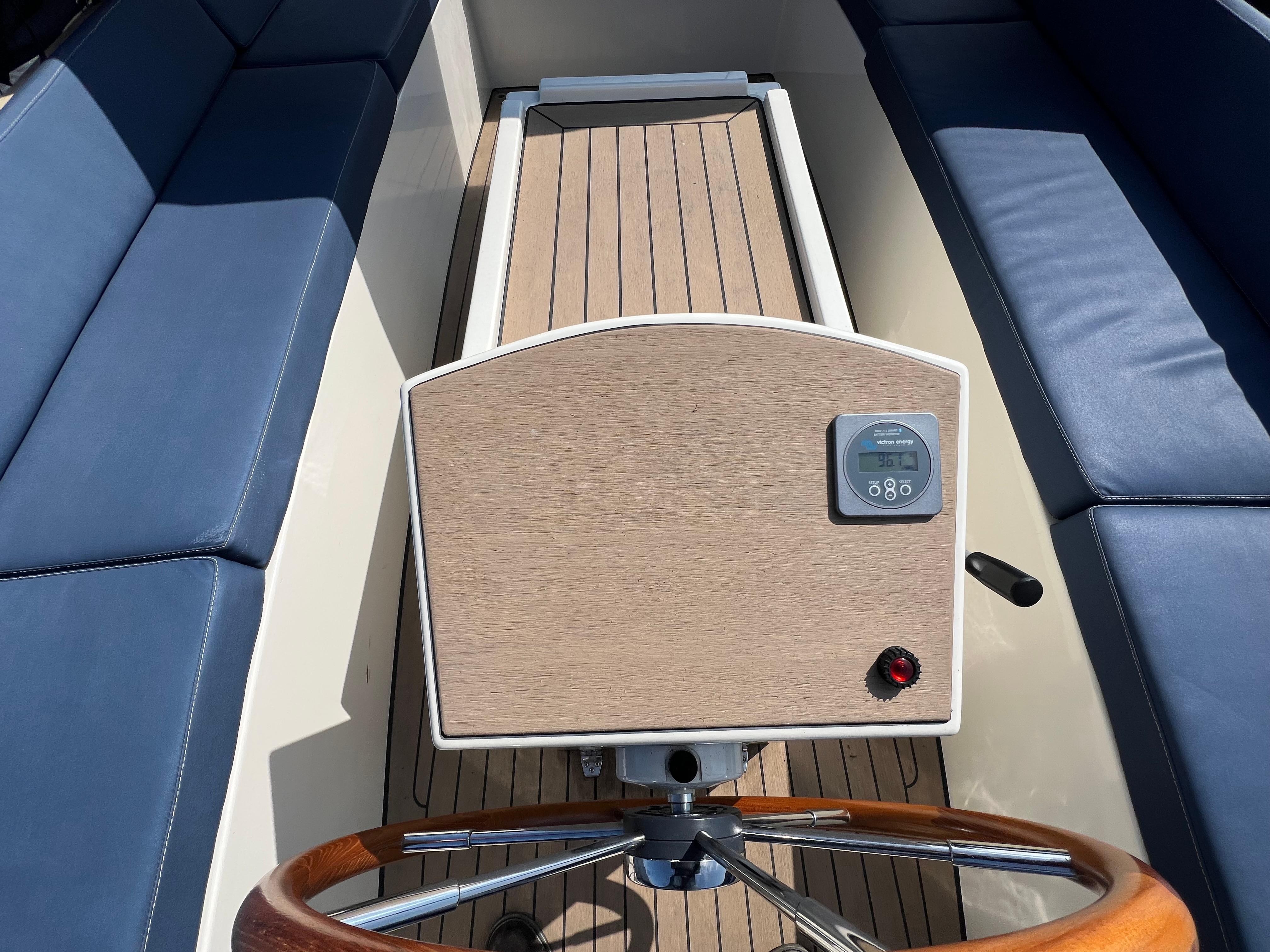 Sloep PVO 700E uit 2020, gebouwd door Prins van oranje, aangedreven door een elektrische Vetus Rimdrive 5,5 KW motor 48V met vernieuwde accu?s (2025).