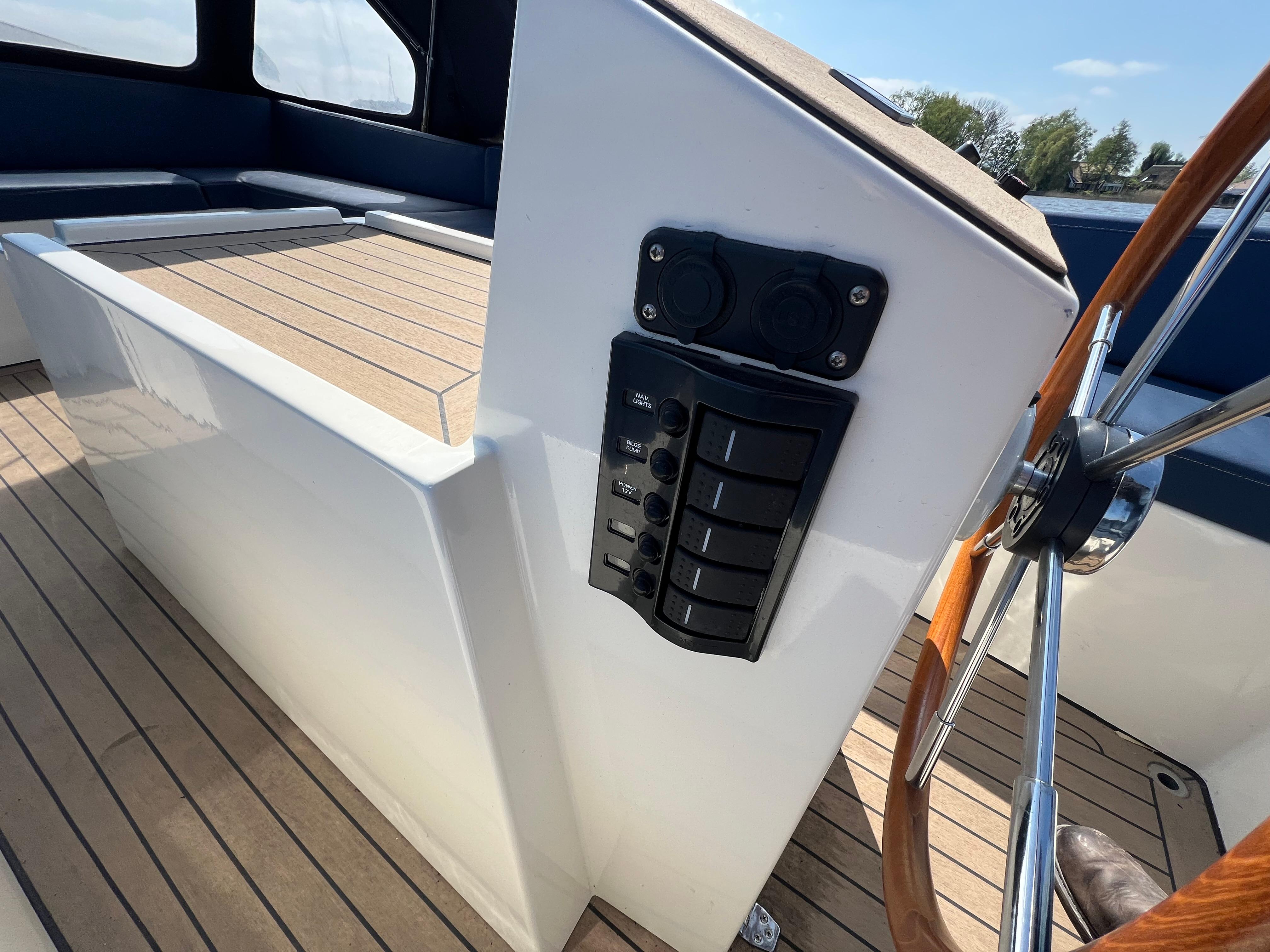 Nette elegante fluistersloep voorzien van vele opties. Zo is het schip rijk uitgerust met Flexiteak, een complete kussenset, buiskap, kuiptafel veel opbergruimte, stootwillen, lijnen en een anker.