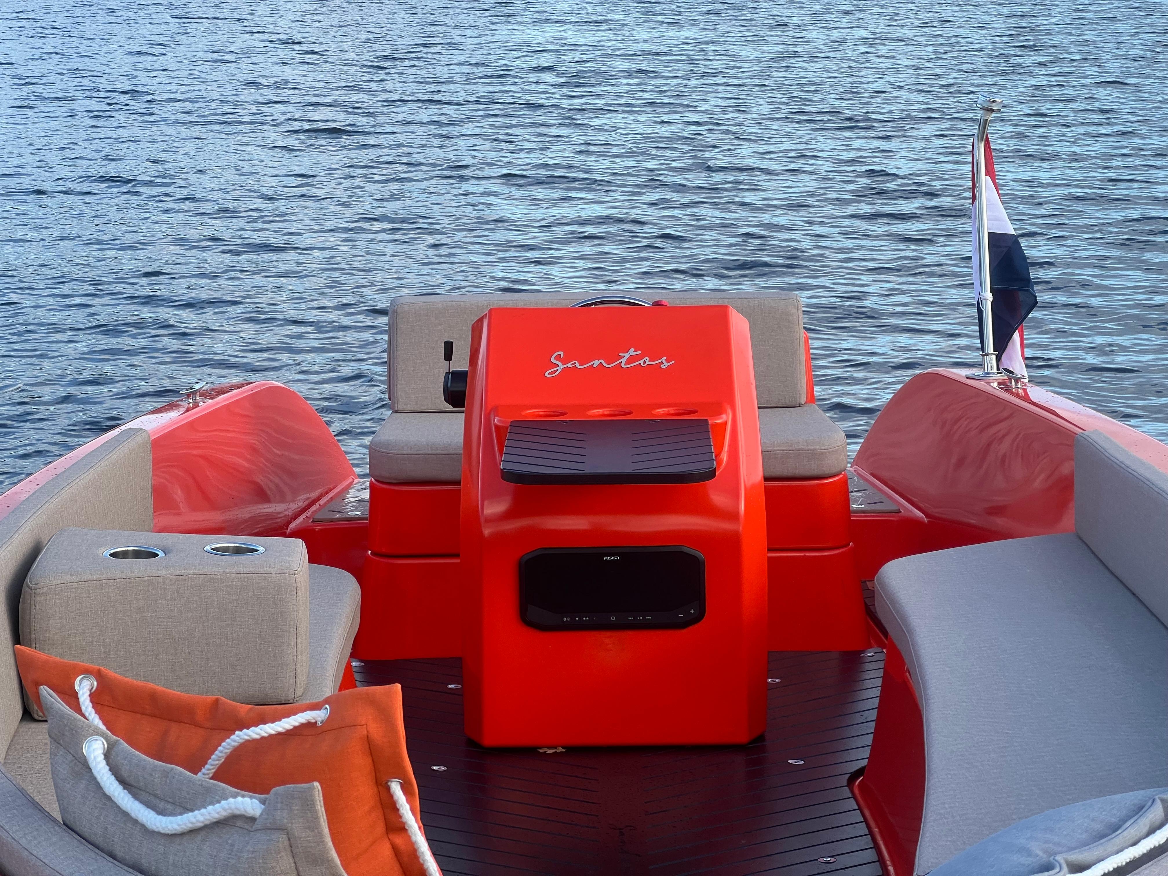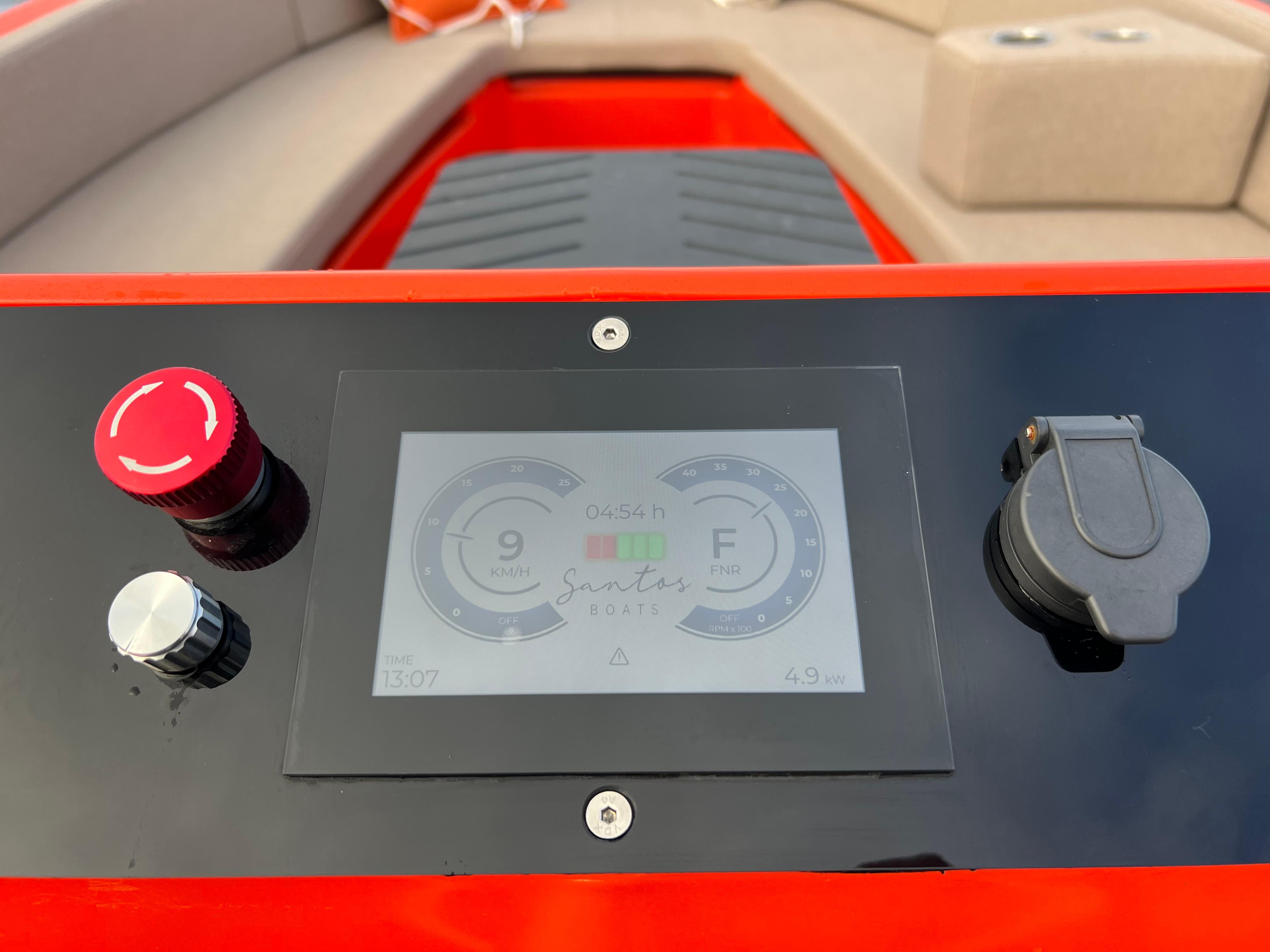 De Santos Boats worden aangedreven door Rimdrive! Een uniek systeem waardoor de boot zeer eenvoudig bestuurbaar is. Door de nieuwste technologie te omarmen en groot te denken, is er een synergie ontstaan tussen prestaties en innovatie. Santos One is uitgerust met een inbegrepen 5 kW, of geüpgrade 11 kW Pod van RIM Drive Technology. Het resultaat is volledige stilte aan boord en een motor die geheel onderhoudsvrij wordt gekoeld. De Lithium Iron Phosphate Battery (LiFePO4) is door haar superieure prestaties de ultieme energiebron. Dit accutype is totaal brandveilig en vrij van degradatie gedurende duizenden laadcycli. Met een inbegrepen accucapaciteit van 10,4 kWh kan de One moeiteloos 8 uur varen. Het schip is uit te rusten met een tweede of derde extra accu.