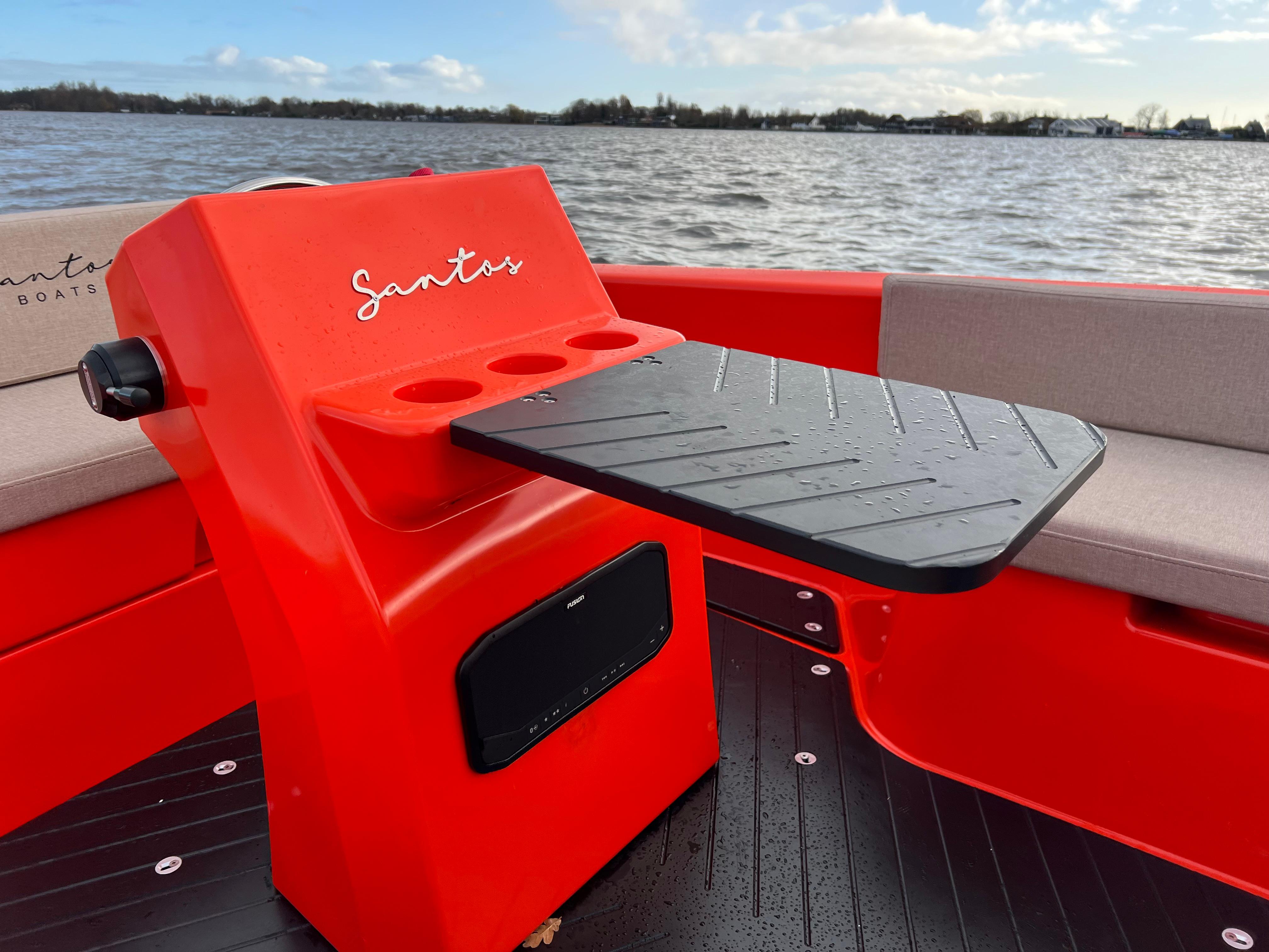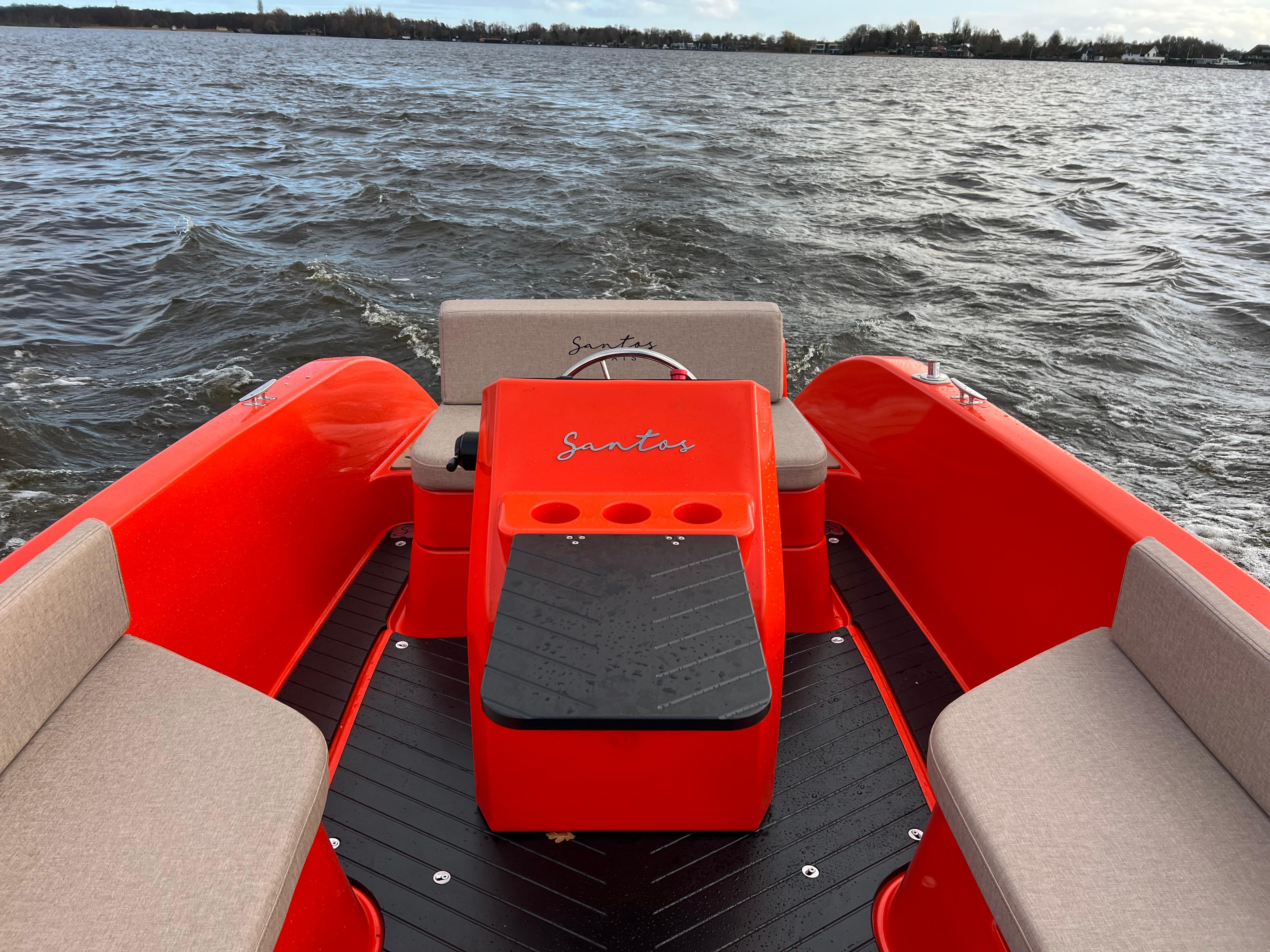 Santos wordt gekenmerkt aan haar luxe en unieke design. De Santos Boats zijn 100% elektrisch aangedreven door Rimdrive. Alle Santos-boten worden van HDPE (High-Density Polyethyleen) gemaakt. Dat maakt ze niet alleen toekomstbestendig, maar het heeft ook een aantal andere voordelen: Aangroei heeft geen kans, Antifouling is niet nodig, Onverwoestbaar, HDPE is volledig recyclebaar en is bestand tegen osmose. Trillingen, geluid en resonanties worden geabsorbeerd. Ook zijn de Santos Boats bestand tegen galvanische corrosie en zijn ze volledig winterbestendig.